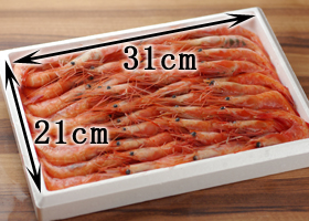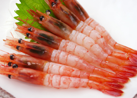 獲れ立てを急速冷凍する事により、色の鮮やかさと、鮮度を保ち、いつでも綺麗な甘海老が楽しんでいただけます。