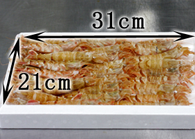 | ご注意点 | 自然解凍や、解凍のし過ぎは、色素の関係で海老が黒くなる事がありますのでご注意ください。 |