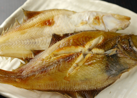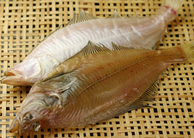 身が厚く、皮目や脂に少し独特の風味があるカレイです。一夜干しにすることで、その風味が美味しさを引き立てる役割として生きてきます。