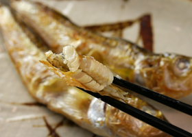 日本海山陰産のハタハタは、漁獲量も多く、秋から春にかけて底引き船で水揚げされます。身離れも良く、ホクホクとした食感と脂の乗りが良いのが特徴で、焼いた時にあふれ出る脂が何よりの証拠です。