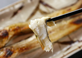 この幻魚(ノロゲンゲ)を一夜干しにする事で、見た目からは想像できない白身の上品な味に仕上がり、人気商品の一つになっています。