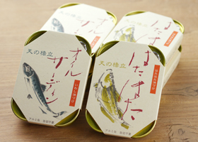 京丹後の「竹中缶詰」製の油漬け缶詰は、地元丹後や日本海近海で獲れた新鮮な魚を塩漬けし、綿実油で漬け込んだ、現在全国的に人気の高い缶詰です。