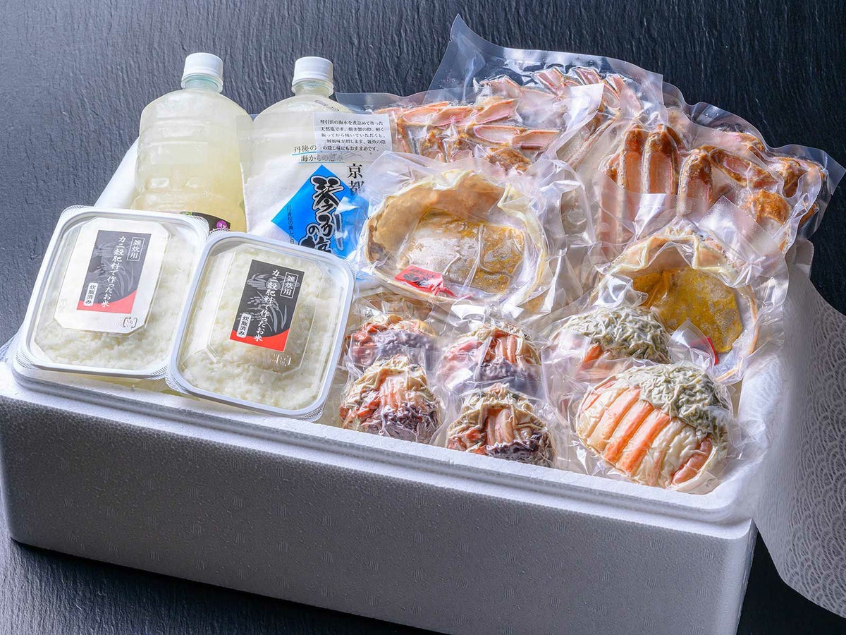 他の画像を見る プレミアムズワイガニ堪能セット ファミリー用 大サイズ 調理捌き済み(生)魚政BLACK(1000g級)×2匹/漢船(900g級使用 正味320g)×2個/宝船(大 210g級使用)×4個/雑炊用ご飯×2パック×香味ミスト ¥ 91,800 税込 カートに入れる お気に入りに登録する