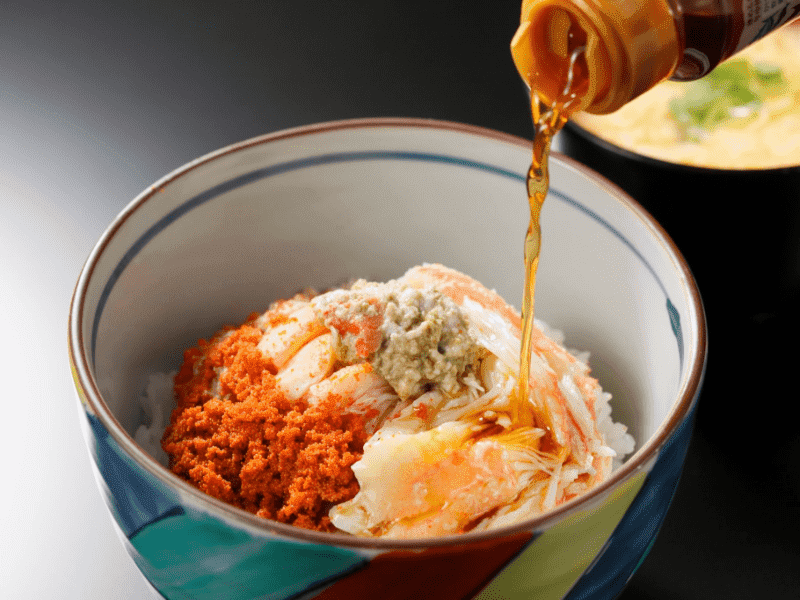 カニとご飯の相性は抜群。それがプレミアムズワイガニやセイコガニなら、更に美味しさアップ!剥き身にして、熱々ご飯の上に乗せ、出汁を垂らすだけで、至高の丼の完成。