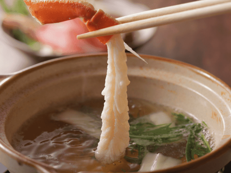 本格派は、プレミアムズワイガニで殻を剥いて。お手軽は、殻が全面剥いてあるカニシャブセットがおすすめ。付属の出汁を入れて、そのままシャブシャブするだけ。