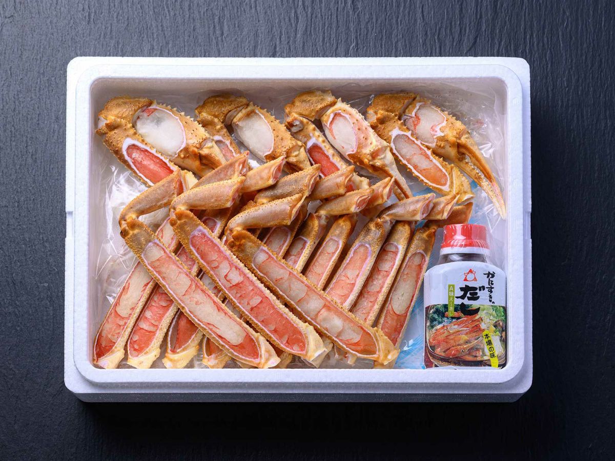 記載された大きさ重さの捌き済み生切ガニ(急速冷凍品)、濃縮だし1個