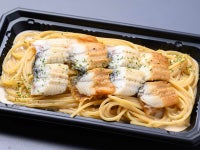 スパゲッティ(デュラム小麦のセモリナ)(イタリア産)、鰻(愛知県産)、牛乳、魚介出汁、オリーブオイル、醤油(一部に大豆、小麦を含む)、みりん、砂糖、たまり醤油、塩、にんにく、パセリ