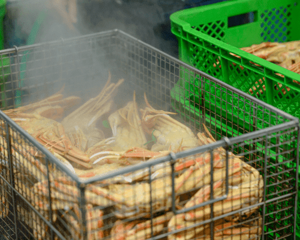 魚政の茹で松葉ガニ、セイコガニの美味しさの秘密は、一度に大量に茹でること。そして、茹でた後の処理手当。