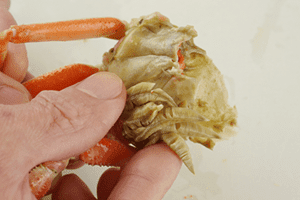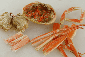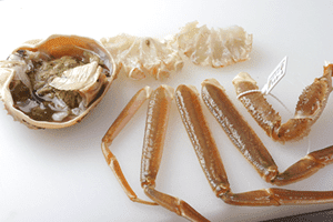 茹でズワイガニは、捌いてそのまま、または、お好みで酢を少し付けてお召し上がり下さい。