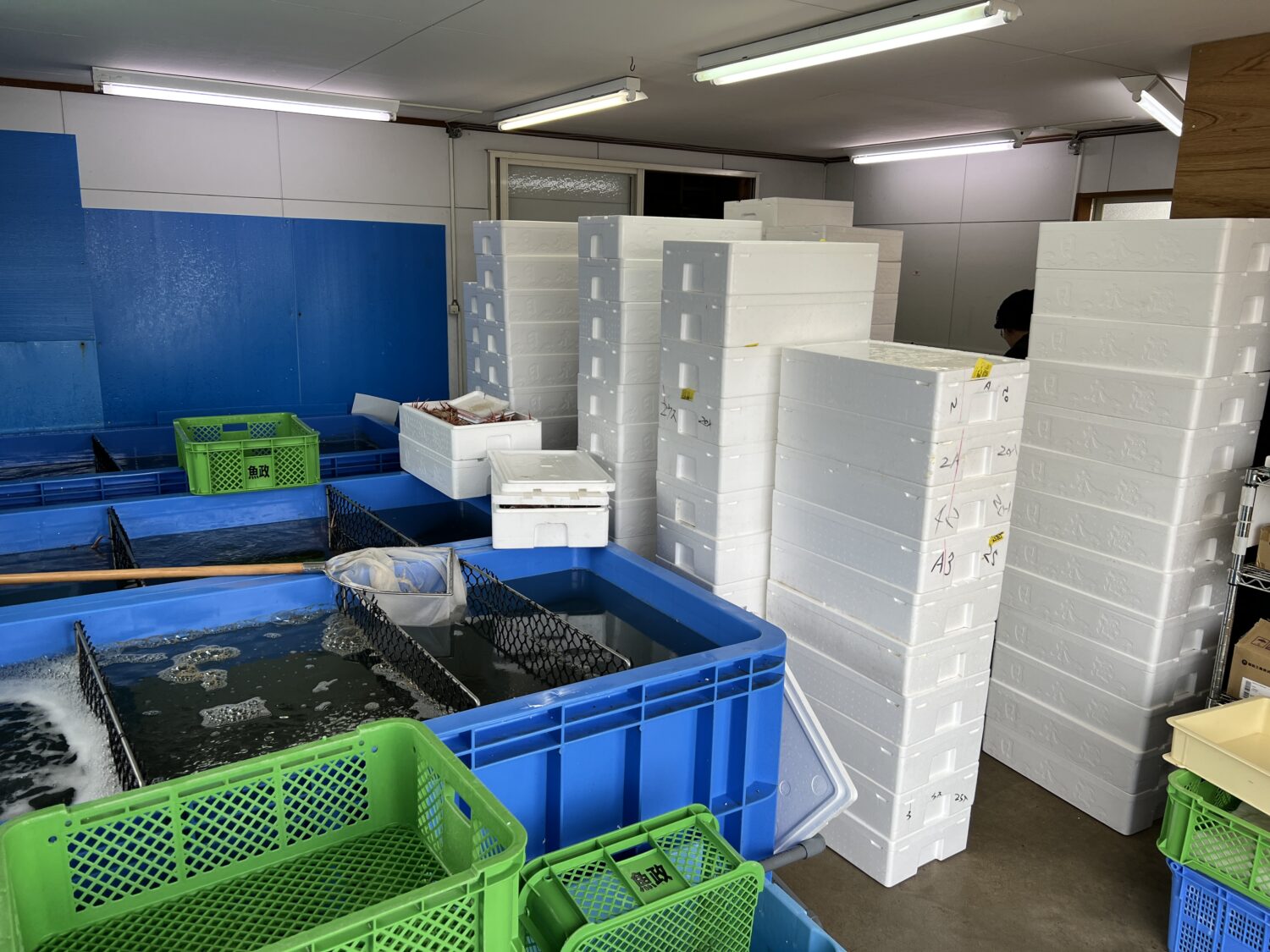 仕分け後は、冷蔵庫へ カニを落ち着かせ 味噌を固める為。