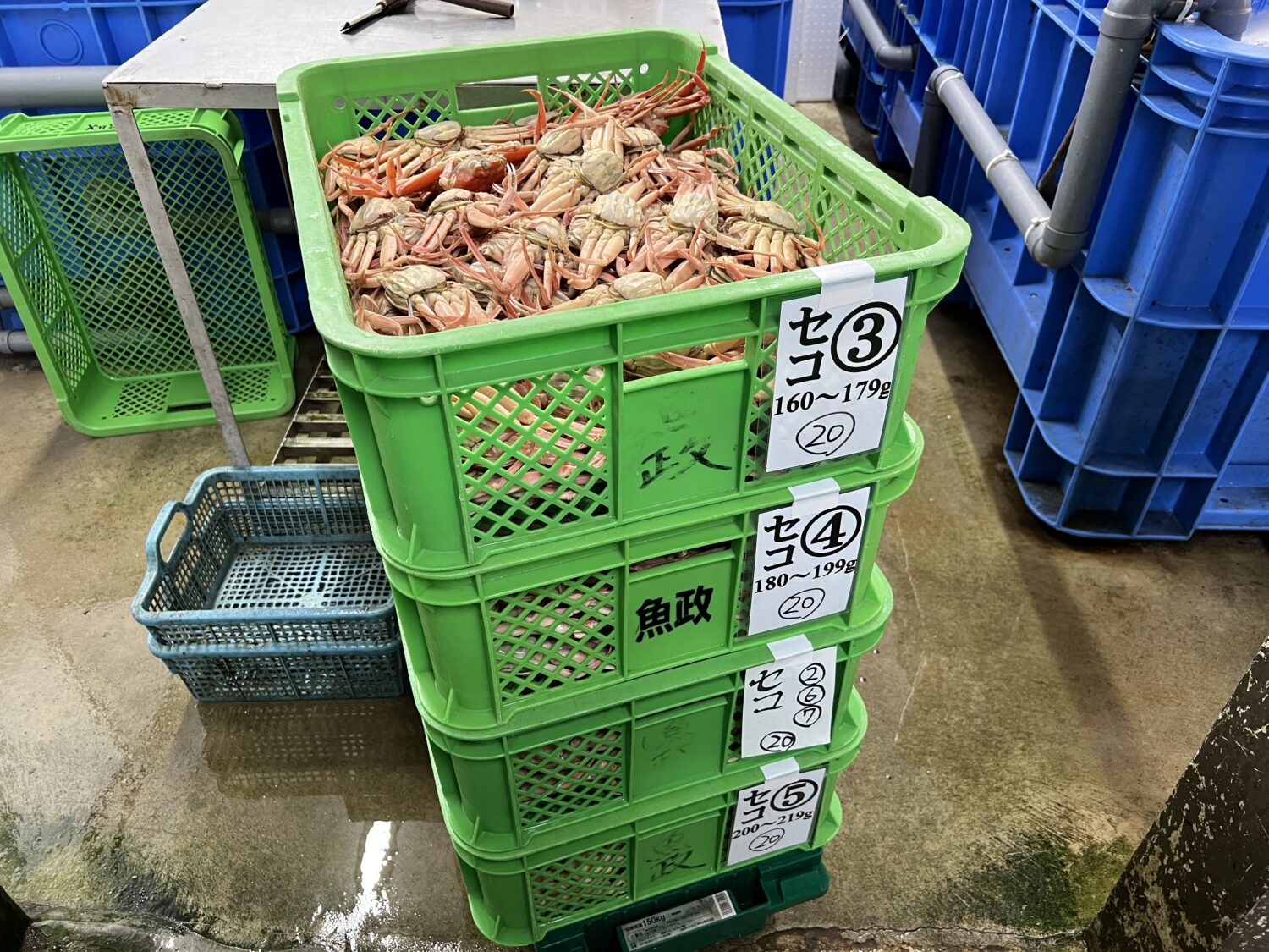 セイコガニは、11月12月だけ。 この期間は、水揚げがある日は、大量に茹で上げます